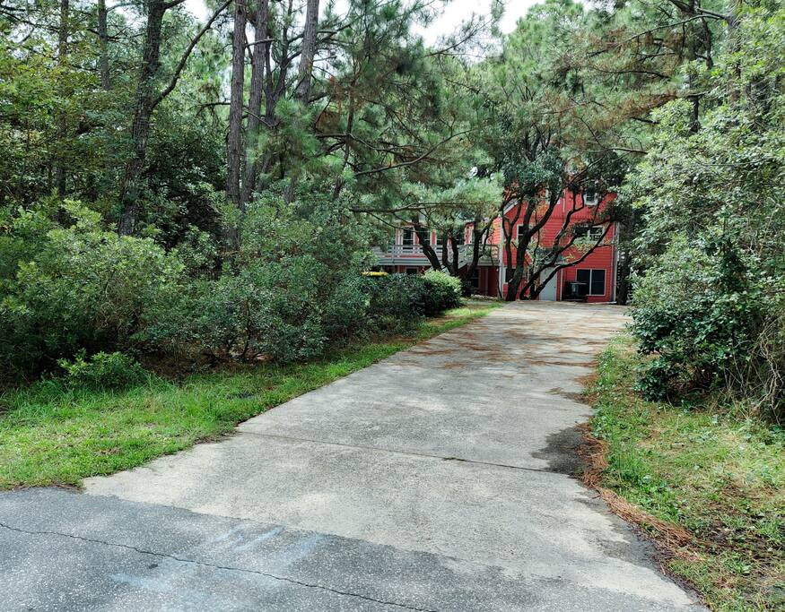 The "Treehouse" on Coral Lane provides access to the great features of the Outer Banks while offering secluded rustic beach charm, making for a relaxing environment at the end of a long day in the sun. The home is nestled in the trees within the beautiful Ocean Hill Community in Corolla, walking distance to private beach access, 4x4 wild horse tours, historic Corolla Village, Currituck Lighthouse, and so much more to be discovered!